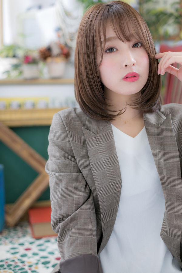斜めバング×外国人風カラーのツヤ感セミディ