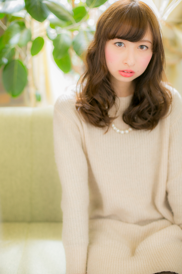 あまり段は入れないロングスタイル。ロッドをMIXに配置することによって、乾かしただけで決まるMIXウェーブに。前髪も根元から立ち上げるようなパーマで、周りとは一味違うスタイルに☆