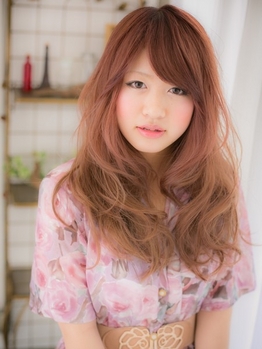 ピンクベージュでふんわり可愛い、優しげカール