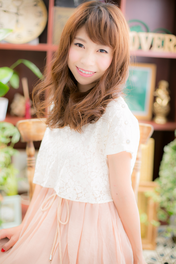全体にかかったランダムカールが風にふんわり揺れる女っぽさを演出させます。あまりレイヤーが入ってないのでボリュームのあるアレンジのしやすいスタイルです。