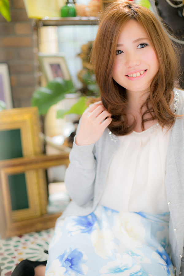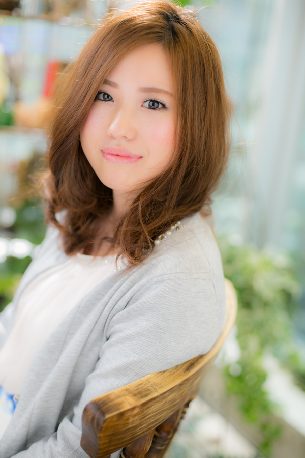 ランダムのカールで、肩にあたってハネてしまってもサマになるように、レイヤーを入れて動きを出しました。かきあげバングで、デキる女性を演出。肩のカールで、気になるお顔周りの骨格もカバーできますよ♪