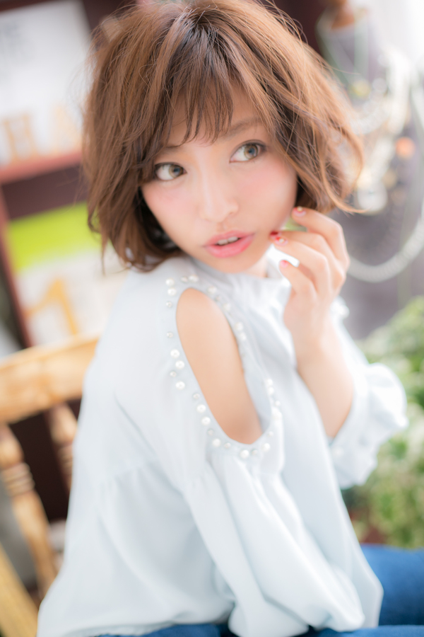 根元に空気含ませるようにドライ。全体にくしゅっとワックスをつけるだけの簡単スタイリングで決まる!ふんわりマシュマロみたいなフェザーボブ。