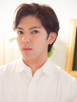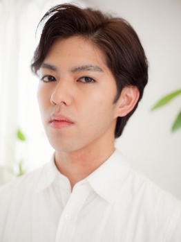 「清潔感のある男の色気」をテーマに作りました。サイドは2ブロックで流しながらチラ見せ。カラーは品のあるブラウンに加え、流れを見せるためにローライトをプラス。黒髪でもカッコ良くキマリますよ。