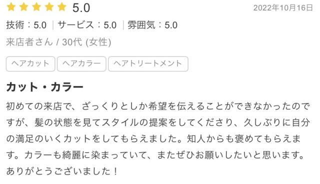 この度はスタイルをお知り合いの方に褒めて頂き、カットやカラーにご満足して下さいまして担当スタッフ及びスタッフ一同大変嬉しく思っております。