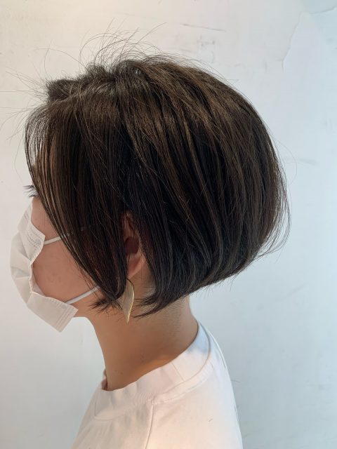 こちらのお客様は夏にさっぱりとしたハンサムショートを楽しんでいらしたので今回は丸みのある形にしました。