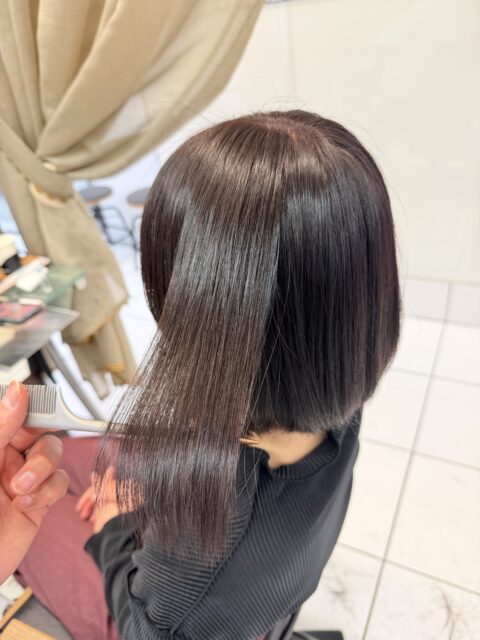 トレンド感もあるのもポイントなのと秋冬に人気のレッドブラウンとムラサキを混ぜ合わせ白髪も染まる落ち着いた大人カラーとなっております!