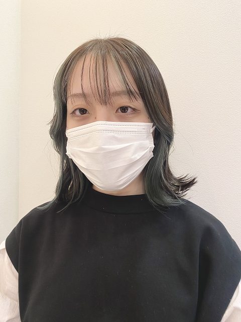 そこで、ハイトーンカラー〖 インナー〗+カーキアッシュでトレンド感じでを出すと…