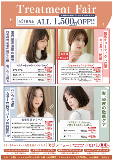 どのトリートメントも1500円OFFととってもお得にお試しいただけます!!