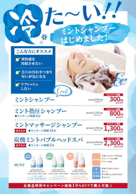 暑いのにもううんざり…そんな時にはミントシャンプー!!!【浦和】