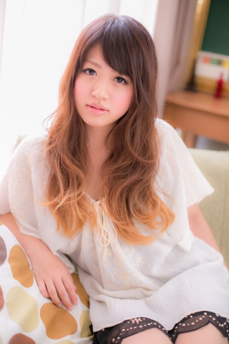 ゆったりとしたロングウェーブに、グラデーションカラーでカジュアルさもプラスしたスタイル。いつものウェーブロングから遊び感を出したいならオススメのスタイル!個性的,自分らしさ,斜めバング,大きめカールでヌーディ感,毛髪改善トリートメントで美髪に!