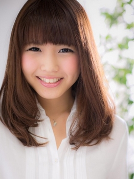 ピュアなイメージの定番セミロングは毛先の丸みがポイント。毛流れが丸く内側に向かうよう、計算してカットします。髪質次第ではパーマや矯正をプラスして。