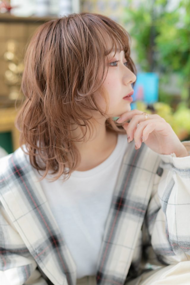 濡れ髪セミウェットウェーブでおフェロに仕上げたくせ毛風ふわミディ。耳かけアシンメトリーなヘアスタイルで大人女子のコーデを完成。ミディアムヘアを際立たせるグラデーションもおすすめ!(メイク担当:北浦和店 棟方)