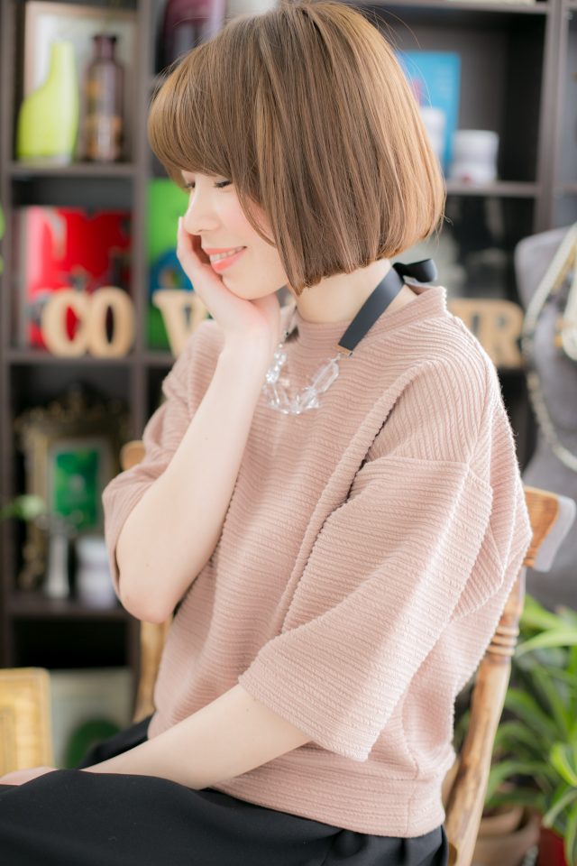 ワンレングスのナチュラルボブにハイトーンのイエローアッシュ系のカラーで個性的に☆斜めバングや厚めバングも◎くせ毛風カールをつけたフェミニンボブや前下がりボブ、クールな大人ボブのイメチェンもGOOD!