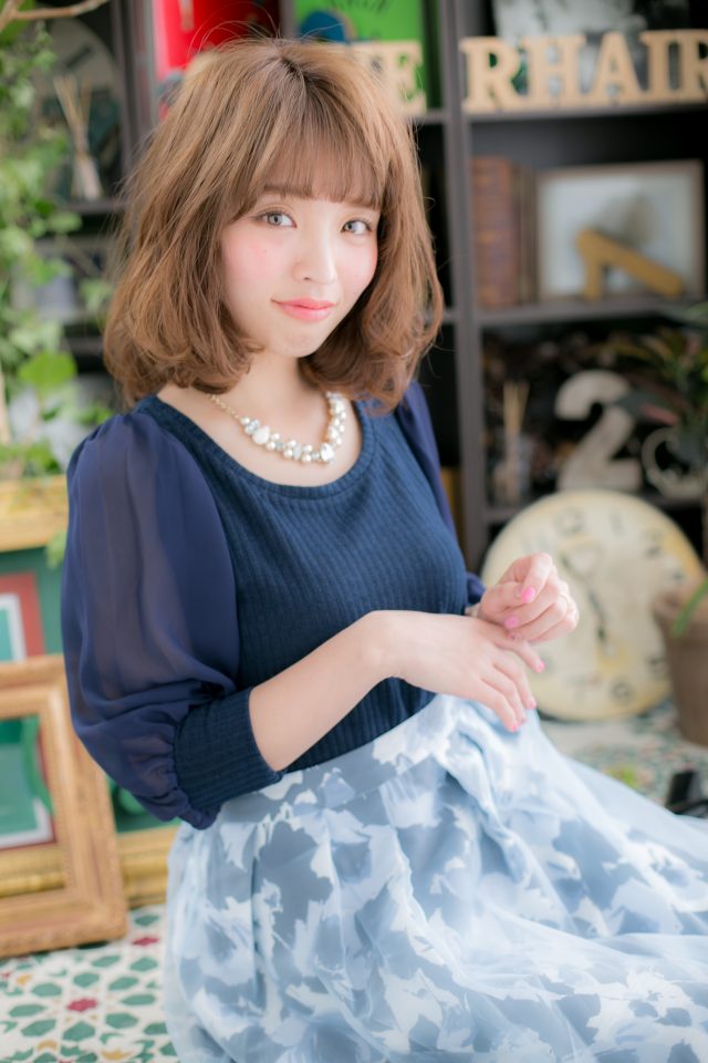たっぷりの空気感を含んだエアリーふわミディ。前下がりで小顔見せ☆くせ毛風のリラクシーなラフカールで抜け感を♪無造作でもこなれ感ある大人女子風に。厚めバングや斜めバングも個性的。耳かけも大人かわいい。