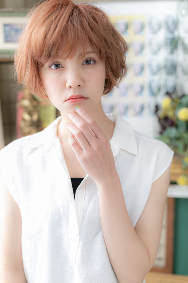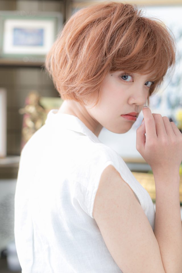 外国人風ピンクブラウンくせ毛風ボブショート