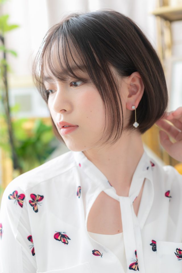 斜めバングや厚めバング,シースルーバングで小顔。ナチュラルボブやフェミニンボブ,大人ボブや前下がりボブ,切りっぱなしボブも◎くせ毛風ゆるふわミディや耳かけ前下がりも大人かわいい。(メイク担当:北浦和店 棟方)