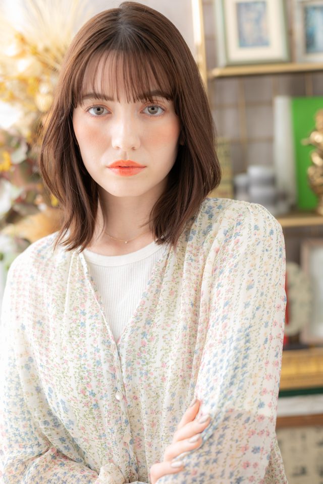 シースルーバングかきあげ前髪、斜めバング厚めバングも大人かわいい。ナチュラルボブフェミニンボブ、大人ボブ前下がりボブも人気。くせ毛風ゆるふわミディや前下がり耳かけウルフで小顔。(メイク担当:川口店伊与田)
