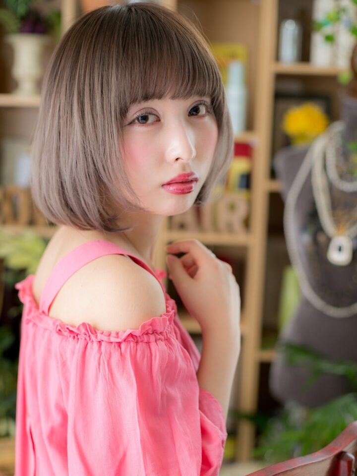 ぱっつんバングとワンカールでクラシカルな印象のナチュラルストレートボブ。アッシュ系ハイトーンのグラデーションカラーをオンして、視線集中のスパイシーガールにイメチェン♪攻め系の大人ボブで周囲と差をつけて!