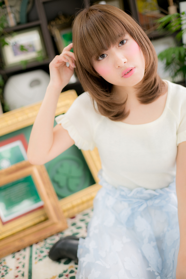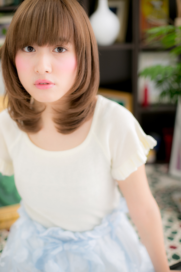 【スタイルは★ブックマーク★が便利】厚めバングと内巻きワンカールセミディ。うざバングやベビーバング、斜めバング、耳かけ、センターパートも◎前下がりでスッキリ小顔に仕上げます。くせ毛風カールのふわミディでルーズ&無造作にしても大人かわいい。