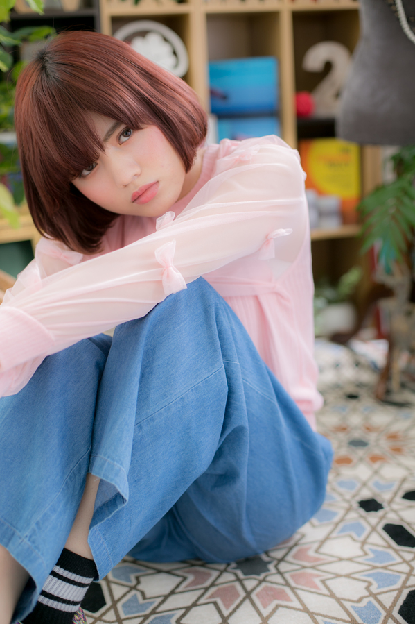 ナチュラルなボブスタイルにレッド、ピンク系のカラーで個性をプラス☆前髪も目の上ギリギリラインで目力もUPさせます♪広がりやすい方はナチュラルストレートをかけると◎