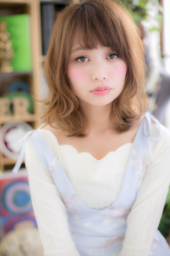 明るいカラーのウェーブスタイルで軽さもプラスされたフェミニンなウェーブスタイルです。前髪で印象も変わるのでご相談ください☆