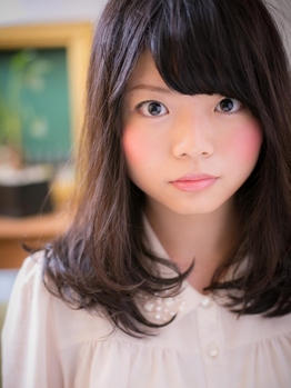 根元のボリュームをやわらかいストレートパーマで抑えて、毛先にくるんと内に入るワンカールのデジタルパーマをかけます。ボリュームの出やすい、クセ毛の方にもおすすめなスタイルです。