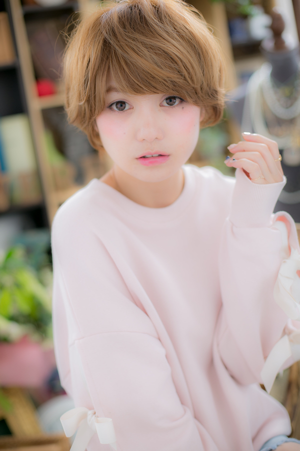 トップに長さを残して女の子らしく柔らかなカールがポイントのショートヘア。ハイトーンカラーで外国の子どもみたいなふわくしゅ感とピュアな透明感を演出。