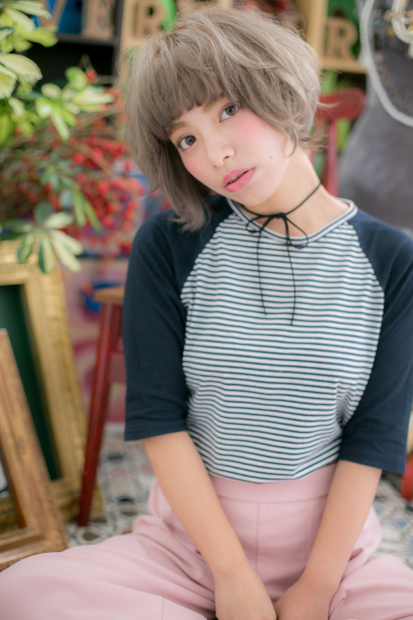 個性の映える攻めカラーがポイントのオシャレボブ。眉がチラ見えするショートバングと柔らかウェーブのかかったガーリーなボブスタイルに、思いっきり明るいアッシュカラーをオン。クールなショートスタイルにヘアチェンジ☆