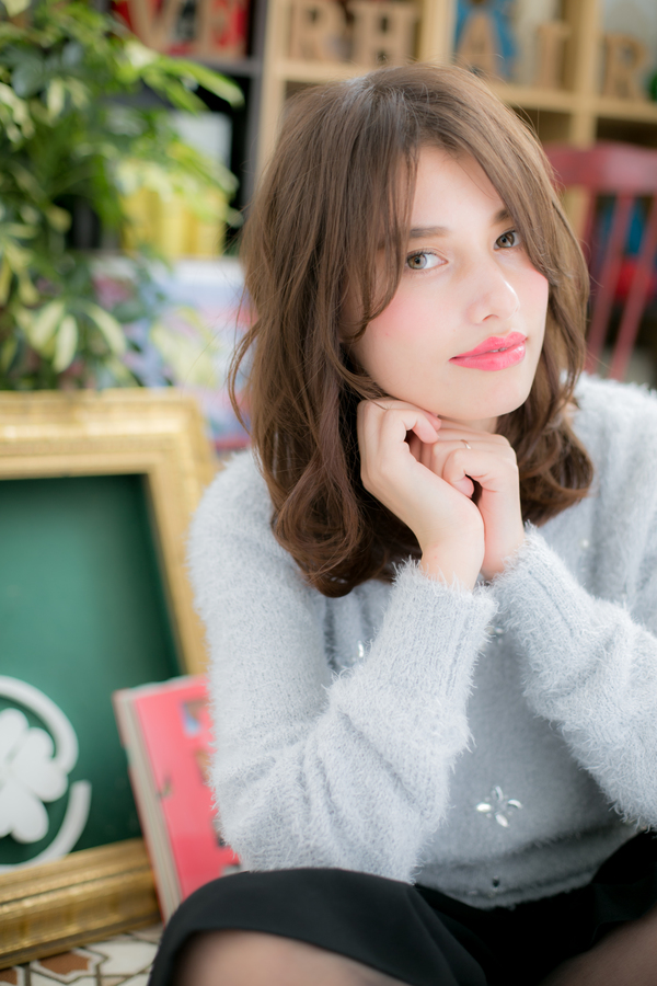 ヌーディでフェミニンなアッシュ系のカラーに潤いパーマで動きをプラスした大人なスタイル。分け目を変えれば雰囲気も変わります☆