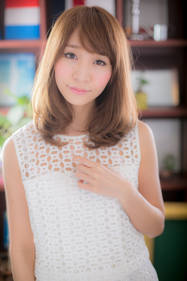 女の子らしさを発揮できるセミロングヘアー!あまり段を入れずにまとまりあるワンカールで毛先の柔らかいボリュームがポイント!斜めバングでフェミニンさも♪これからの時期は明るめなヌーディカラー,ベージュカラー,ルミエールカラーがオススメです★