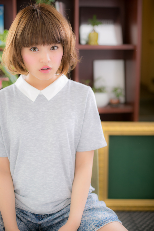 ふんわりと立体ウェーブでエアリー感をだし,目の上ギリギリでカットした前髪で大人かわいさと眼力UPを☆重めスタイルなので,カラーはヌーディカラーやルミエールカラーがオススメ。小顔効果のある厚めバングや大人っぽい斜めバング,センターパートも☆