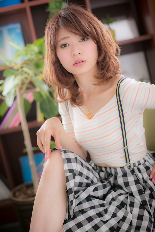 ふんわり細めの毛束のカールの重なりが可愛いモテ系ウェーブ。直毛やペタンとしがちな人にもぴったり。前髪にもゆるいパーマがかかってるので簡単スタイリング。グラマラスな黒髪,暗髪カラーやセンターパートもご相談下さい。耳かけしても可愛さUP☆