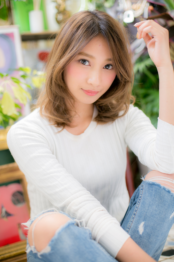 顔周りのレイヤーと毛先のカールがフェミニンな華やかさをプラスしてくれます。毛先に軽くミルクやワックスでスタイリングで簡単にセットも。
