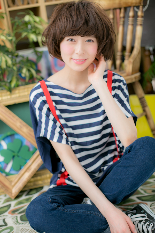 ノームコアなナチュラルボブにくせ毛風のエアリーカールをオン。自然なゆるウェーブのベビーショートで、フェミニンでやわらかな雰囲気に。厚めバングと合わせて目元の印象UP!顔の面積を小さくしてキュートな小顔に見せます。(メイク担当:北浦和店 棟方)