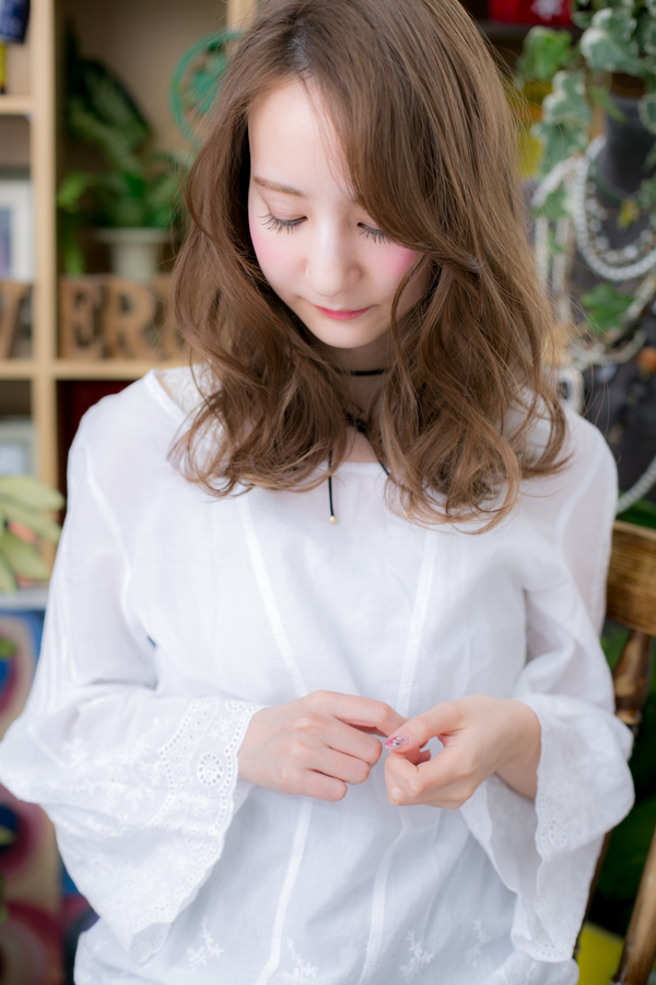 ノーバングxほつれたようなニュアンスカールで、抜け感ある大人女子スタイルに。無造作にかきあげてもカッコイイ。肌なじみの良いベージュ系やアッシュ系をグラデーションカラーで楽しめば、表情豊かな美人髪に格上げ。