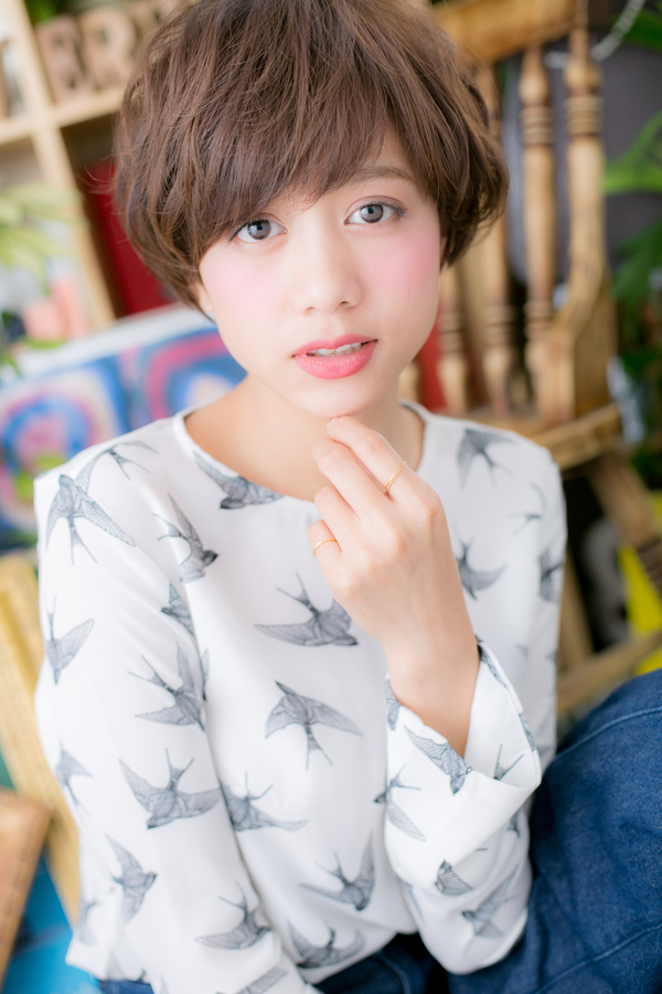 コンパクトフォルムの丸みあるマッシュショートは小頭効果大!スタイルアップを狙います。くせ毛風のニュアンスカールで動きを出し、アシンメトリーなアレンジで無造作に仕上げれば、ラフカッコイイ個性的ショートに。