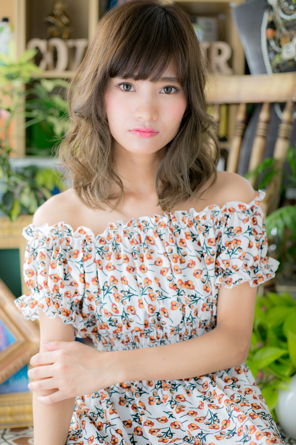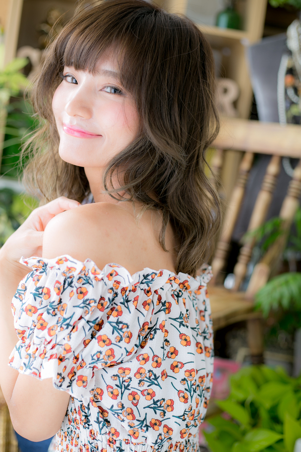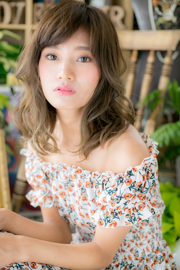 顔周りのカール、特に頬骨にかかる毛束で骨格をカバーして、お顔をキュッと引き締めて小顔に見せます。斜めバングとくびれカールのたおやかな動きで旬のハニーヘアに。男女問わず人気の愛され好感スタイルに格上げ♪