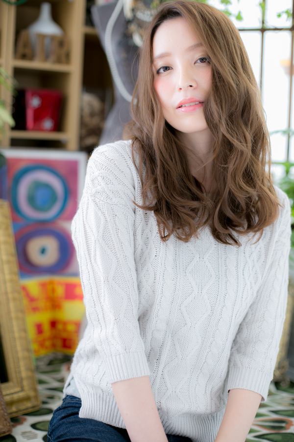 くせ毛風エアリーロング。クールな前下がりやセンターパートも大人女子のファションにおすすめ。斜めバングや厚めバングで小顔に見せたりヘアアレンジ◎耳かけも大人かわいい。トリートメントしたようなカラーリングで髪の毛の悩みも解消する人気のカラーもおすすめ☆30・40代にもおすすめ(bliss北浦和店アシスタント棟方の撮影スタイルです。メイク担当:棟方