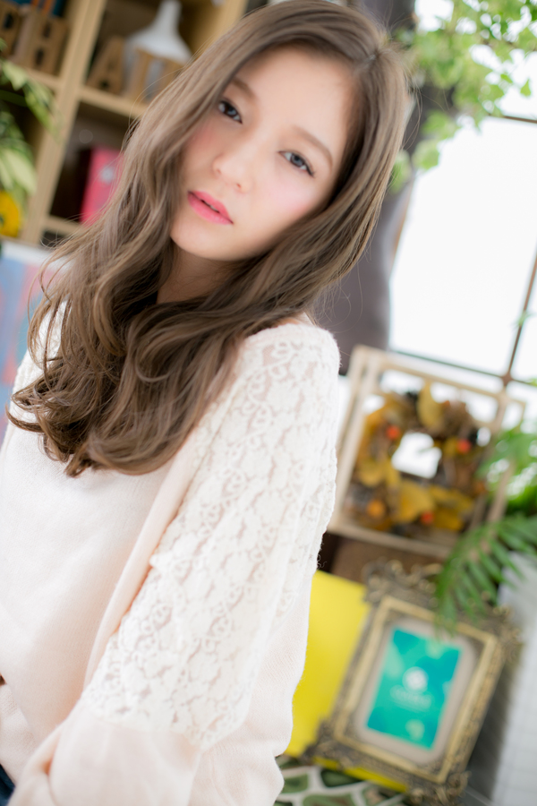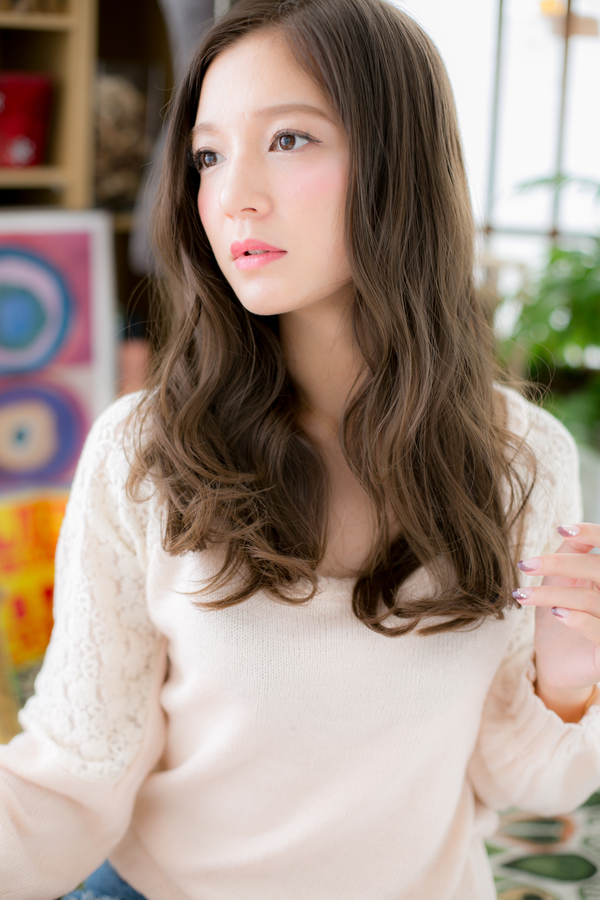 リップラインから揺らめくくせ毛風カールがとびきりフェミニンな印象。輪郭カバーで小顔見せもバッチリなヘアスタイ♪ふわミディからの伸ばしかけにGOOD。大人かわいい耳かけや前下がりもヘアアレンジ!髪の色はグラデーションでトリートメントしたようなカラーリングで大人女子のファションにもおすすめ☆30代・40代にも◎(メイク担当:川口店 成田)