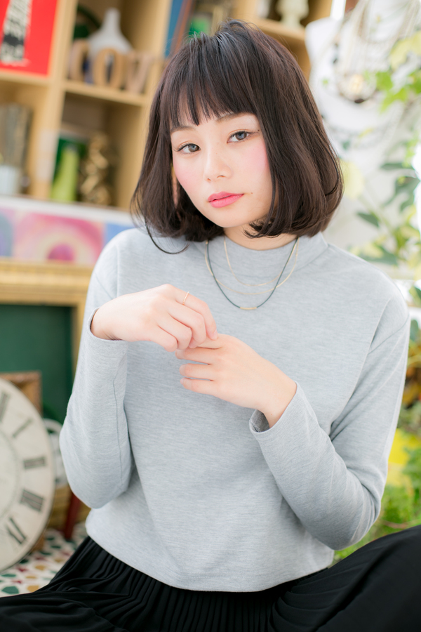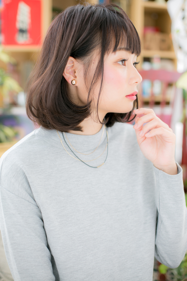 斜めバングや厚めバングで目元を印象つけたり、センターパートでクールにしてもGOOD。大人かわいい前下がりボブは、ナチュラルボブや大人ボブ、フェミニンボブからのイメチェンにオススメ。くせ毛風のふわミディも人気。ヒアルロン酸カラーは白髪にも対応可。