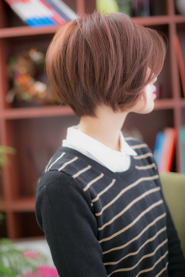 ボーイッシュになりすぎない、ナチュラルショートボブ。サイドに流した前髪のラインからバックまで、きれいな曲線でつながるようにカット。丸みあるフォルムとツヤ感で、フェミニンにもなる大人ボブ。伸ばしかけの方にもオススメ!センターパートや耳かけも♪