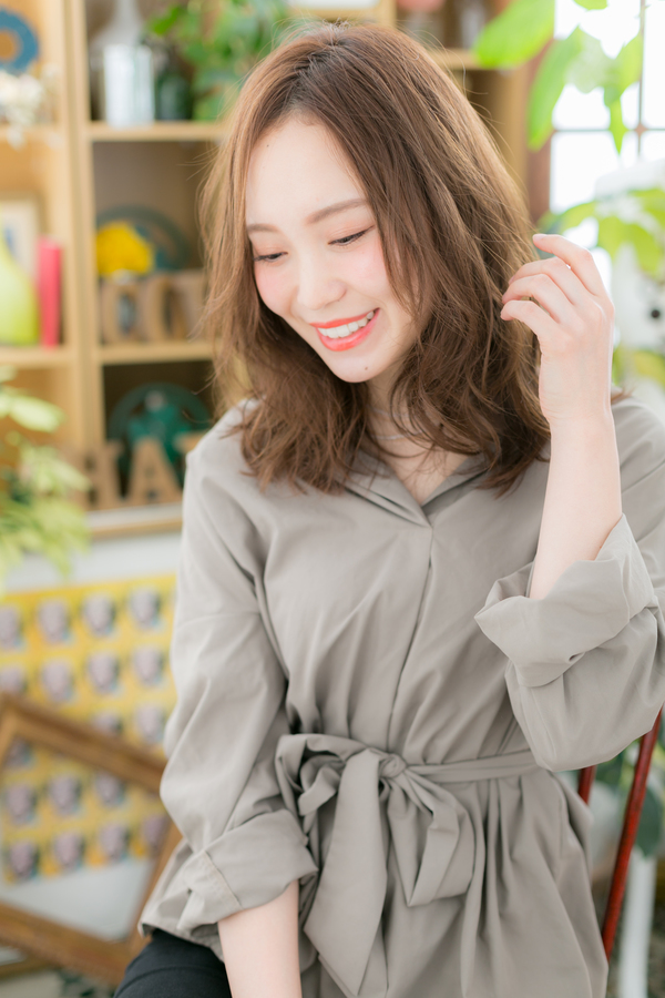 エアリーな雰囲気がフェミニンなふわミディ。ナチュラルボブやフェミニンボブ、大人ボブや前下がりボブからの伸ばしかけにオススメ。ベージュカラーやグラデーションカラーで立体感を出したり、旬のグレージュもグラマラス。