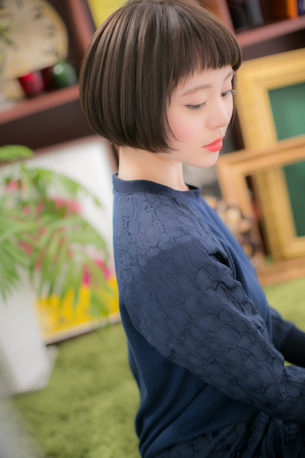 パツンとした前髪xフェイスラインをやわらかく包んだサイドラインが、モードでクラシカルな中にも、ピュアな女の子らしさを演出してくる”フレンチシックなリラックスボブ”。顔周りに沿った毛流れで小顔効果もあるので、ショート初挑戦の方にもオススメ♪
