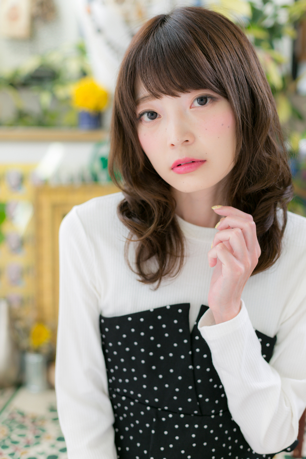斜めバングや厚めバングで目力強調。耳かけやノットヘアもトレンド。内側に入るようにドライすれば、ラフなまとめ髪ヘアアレンジもOK。ナチュラルボブやフェミニンボブ、大人ボブや前下がりボブ、ふわミディも人気。ヒアルロン酸カラーは白髪にも対応可。