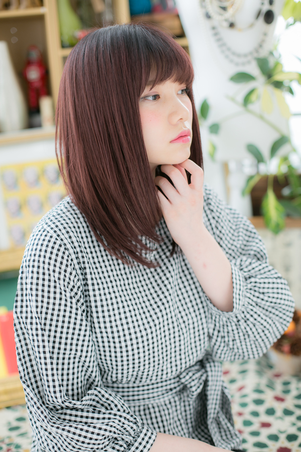 男女問わず人気のナチュラルセミディは個性的なボルドーカラーでガーリーに。目の上ギリギリの厚めバングや斜めバングで目力UP。くせ毛風ふわミディもモテ髪で大人女子のファッション度UP!トリートメントしたようなカラーリングで髪の毛の悩みも解決!人気のカラーや暗めのグラデーション、ベージュもおすすめ!30代・40だいにも◎(メイク担当:北浦和店 棟方)