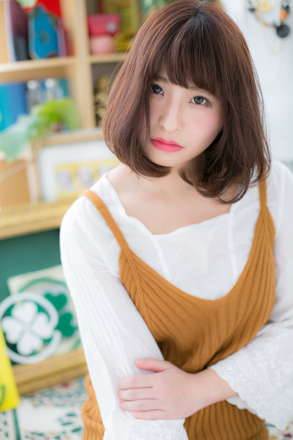 厚めバングや斜めバングで目力強調して大人女子のファッション度UP!耳かけしたりくせ毛風カールのフェミニンボブでラブガーリーな愛されヘアスタイルに。前下がりボブやナチュラルボブ、大人ボブからのヘアアレンジにオススメ。ミディアムヘアを際立たせるグラデーションで髪の毛の悩みも解決!30代・40代にも◎(メイク担当:川口店 成田)