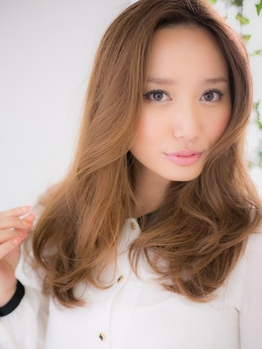 「cancam」や「steady」で活躍中の読者モデル…李 雨瀟ちゃんは、全体的にゆるーく、たゆたうリッチカールで、少し大人な愛されヘアに!華やかなイメージの明るめカラーは上品さをKEEPするために艶が大切。トリートメントの同時施術がオススメです。