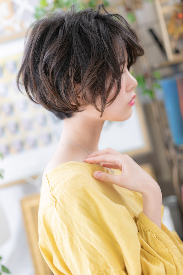 くせ毛風パーマで朝楽の簡単スタイリング。黒髪でクラシカルにしたり、耳かけで大人女子のコーデも完成。トリートメントしたようなカラーリングで髪の毛の悩みも解決!人気のカラーや思い通りの茶色もおすすめ!30代・40代にも◎(メイク担当:北浦和店 今野)