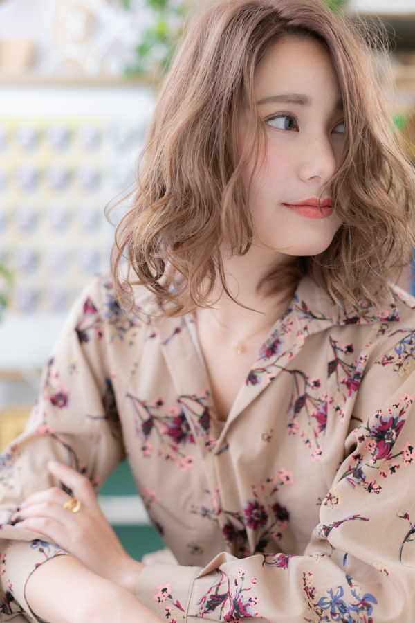 バーム仕上げでウェーブにツヤ感をプラスし、ラフ感の中にきちんと感を出して大人女子のコーデを完成。センターパートやアシンメトリーなヘアアレンジもOK。ミディアムヘアを際立たせるグラデーションもおすすめ!30代・40代にも◎(メイク担当:北浦和店 棟方)