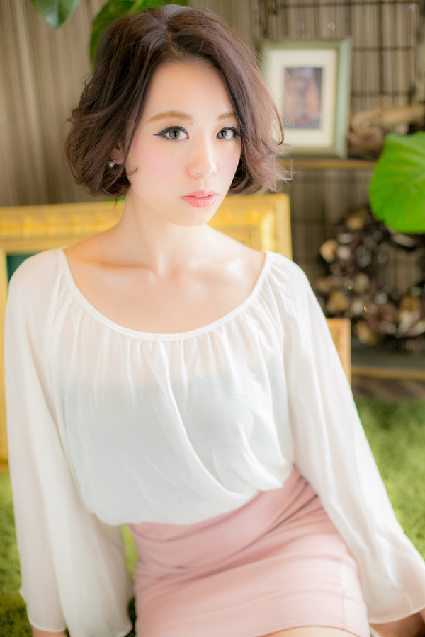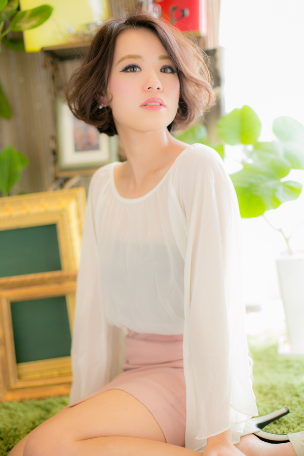 大人かわいいナチュラルボブに柔かいカールをつけて,フェアリーにもグラマラスにも見える大人ボブスタイルに!センターパート,斜めバング,厚めバングと,前髪で印象もガラッと変わります☆重めスタイルだけど明るめのカラーとカットで空気感もでます。簡単スタイリングもうれしい。